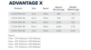 Dyneema® fiber SK99 core and 100% high tenacity polyester cover.