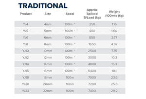 Applications -Sheets, halyards, down hauls, runners, reefing line and spinnaker guys.